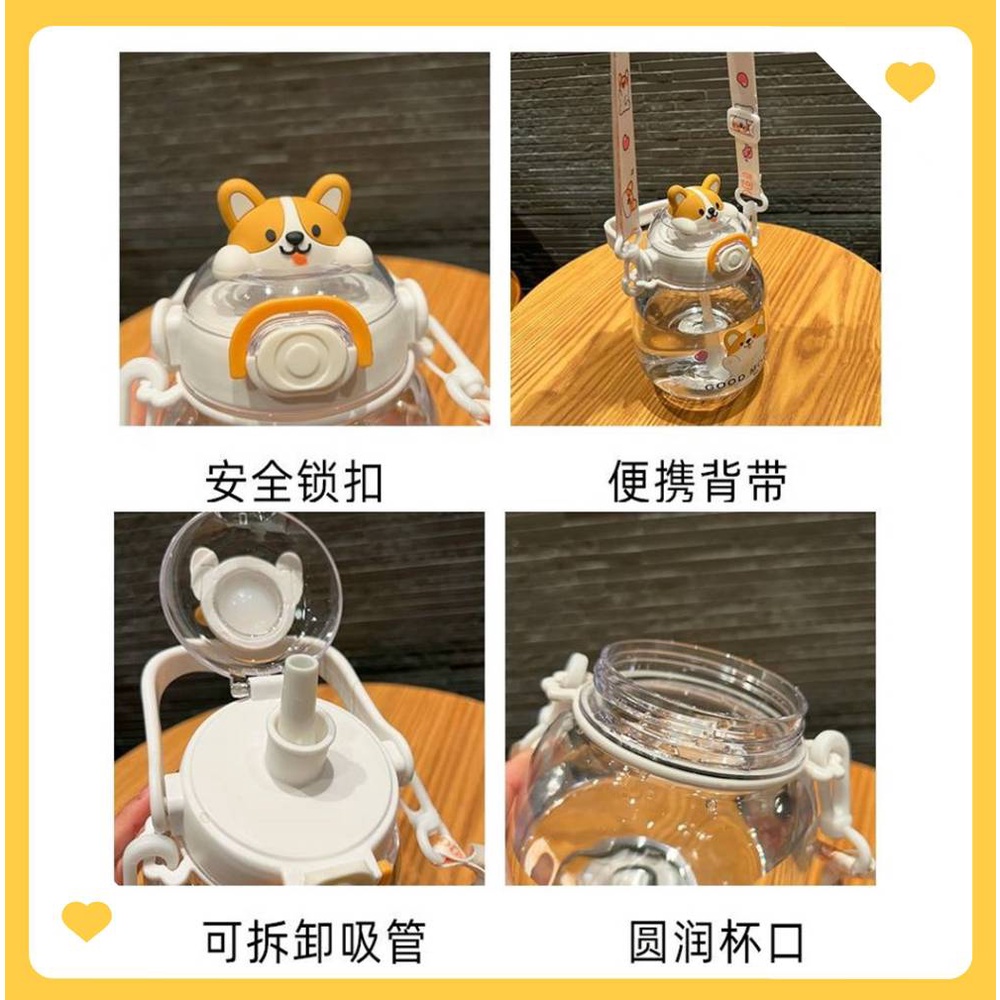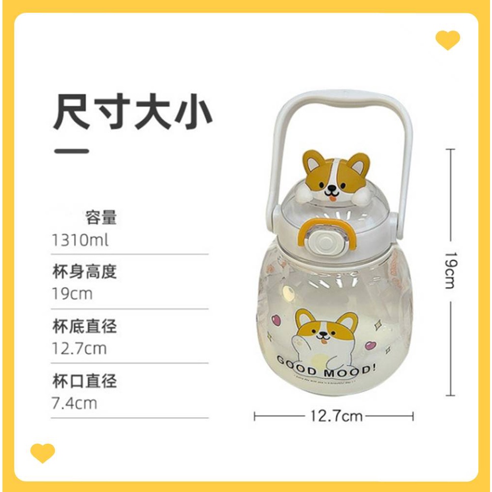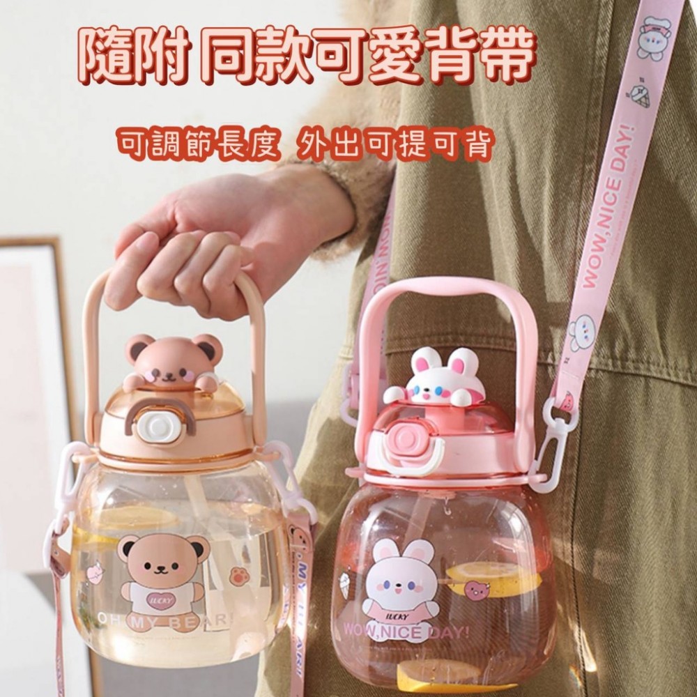 可愛動物水壺1300ml附背帶 大肚吸管杯吸管水壺 1300cc兒童水壺 小熊水壺 可愛水杯 大容量水壺 柯基兔兔熊熊