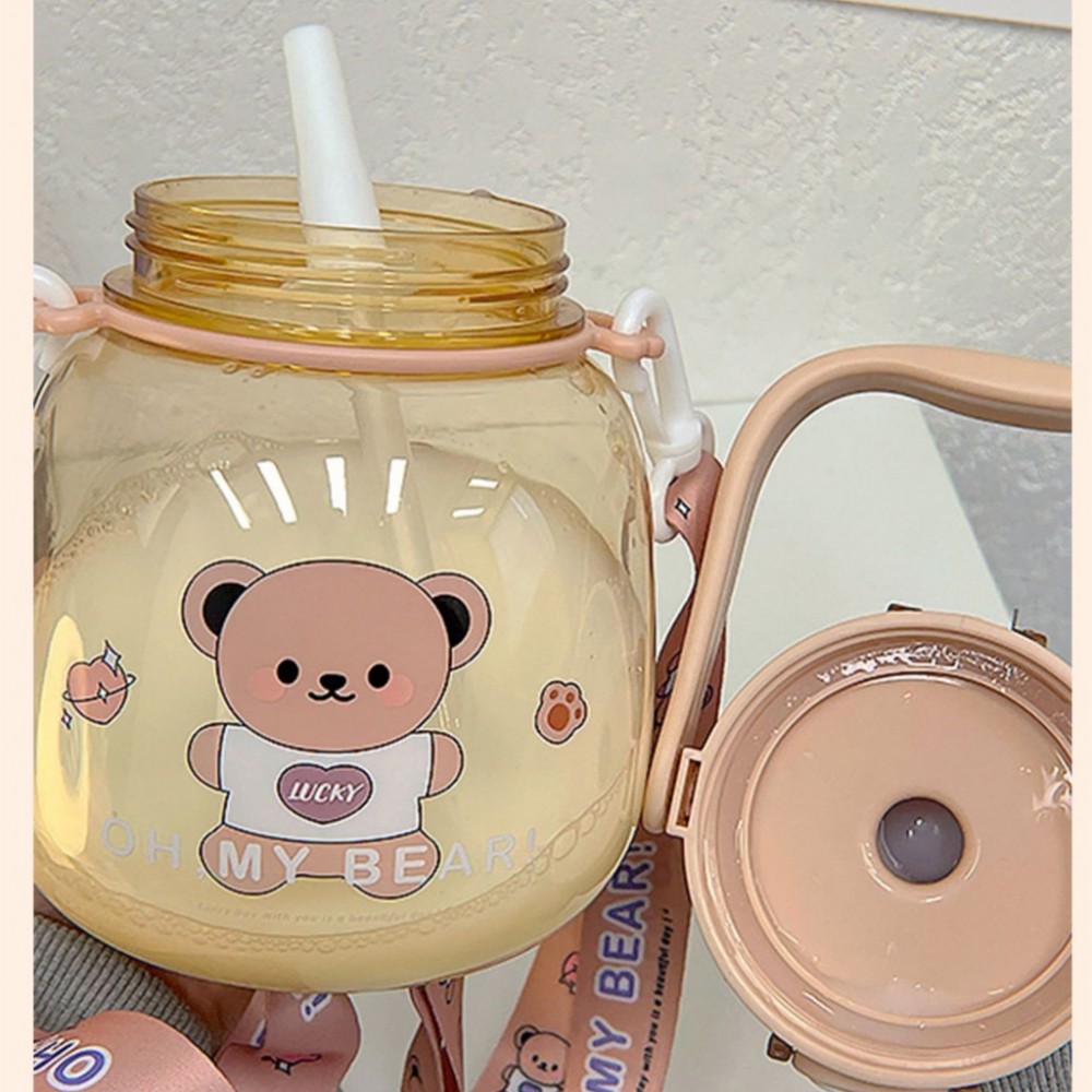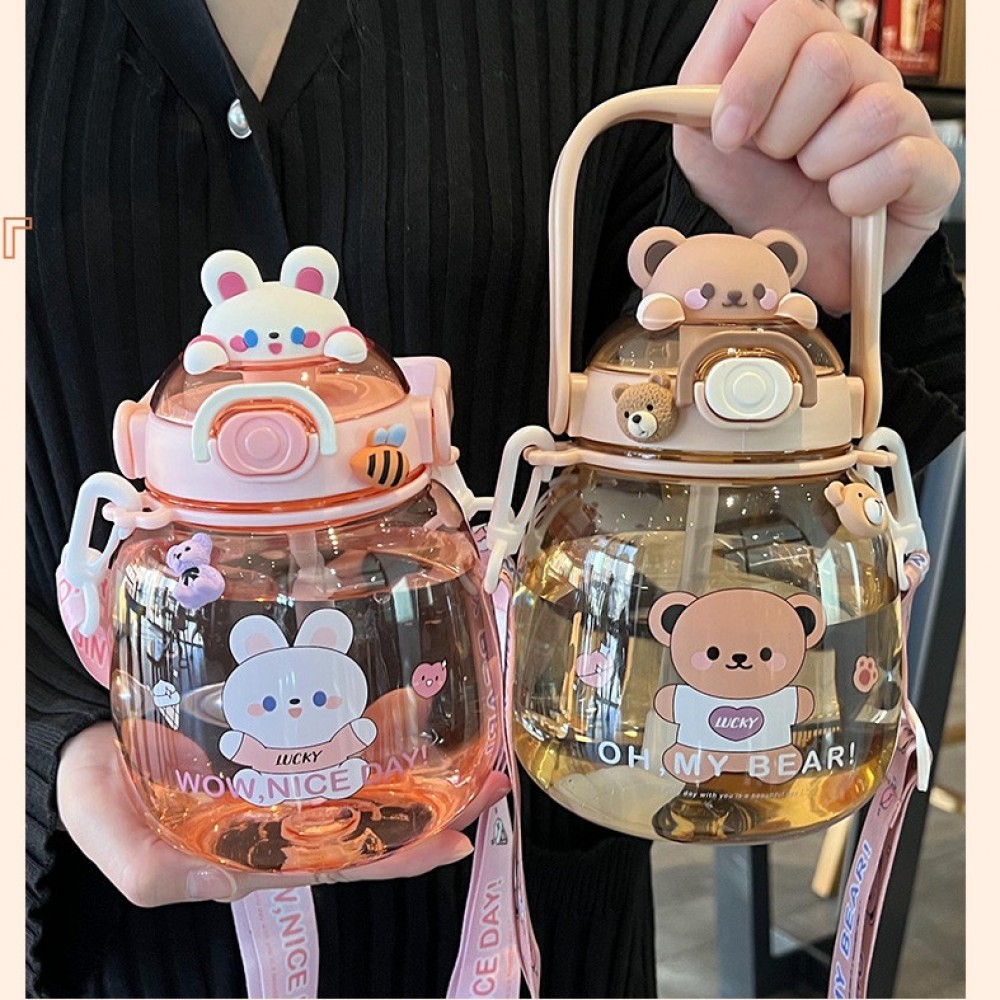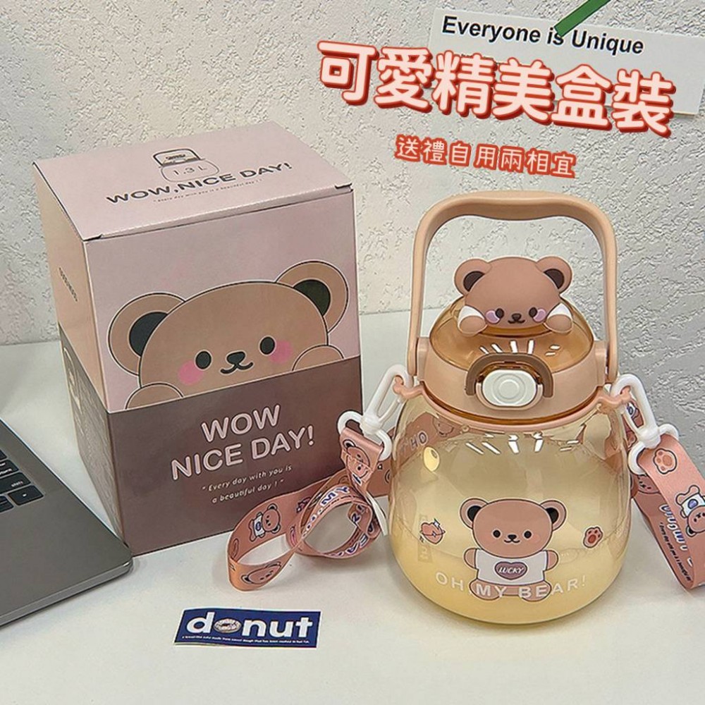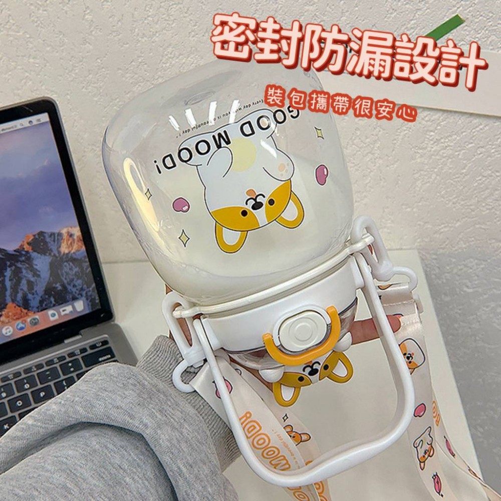 可愛動物水壺1300ml附背帶 大肚吸管杯吸管水壺 1300cc兒童水壺 小熊水壺 可愛水杯 大容量水壺 柯基兔兔熊熊