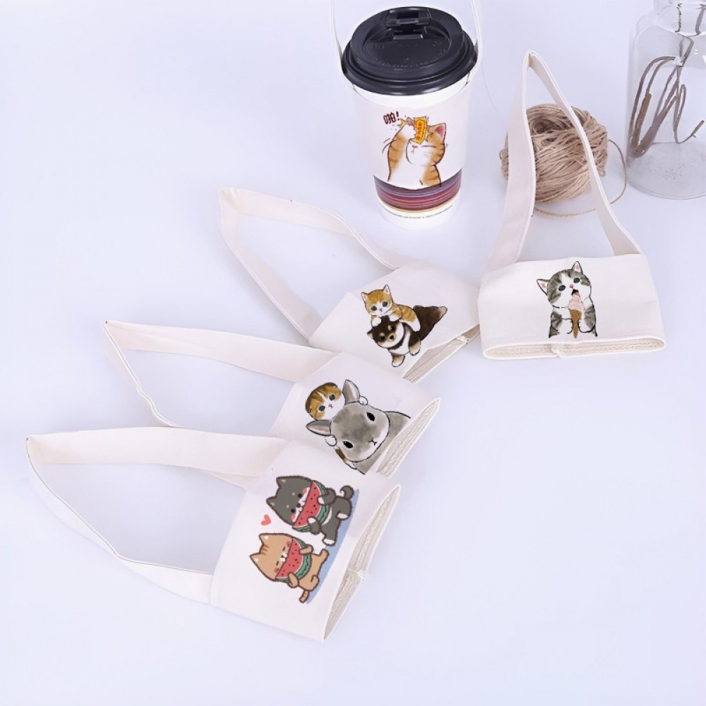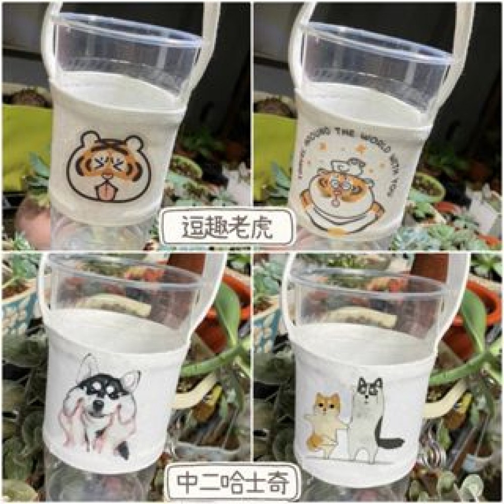 萌貓手搖杯杯套提袋 大象杯杯套 柴犬環保飲料提袋 貓咪環保杯套杯袋 胖虎手提杯套 柯基飲料袋 小熊飲料杯套