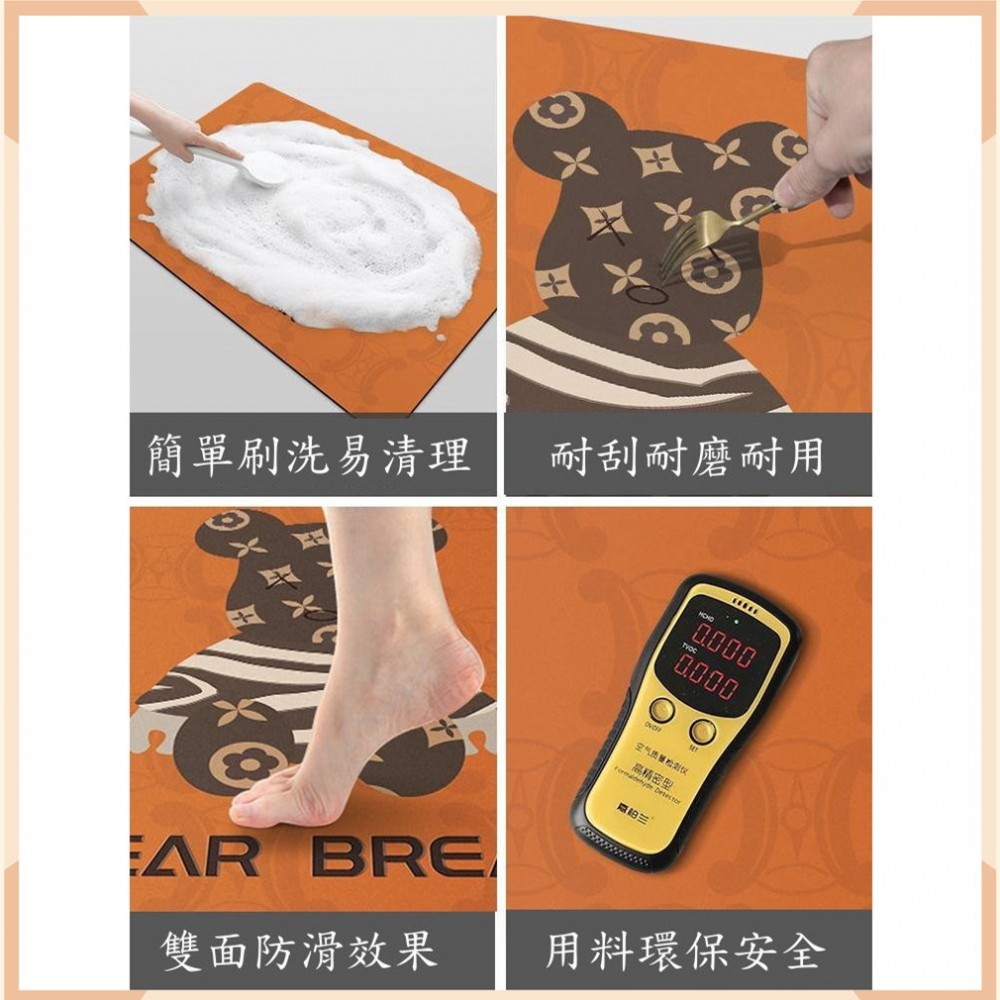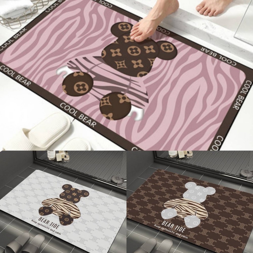 潮牌條紋小熊浴室地墊 硅藻泥矽藻泥珪藻土軟地墊 腳踏墊 瞬吸墊 吸水地墊 積木熊暴力熊庫柏力克熊 生日禮物